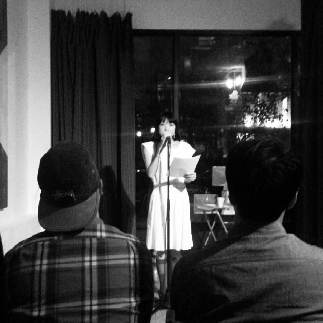 This reading, held at the Brooklyn Launchpad last Friday, was hosted by Saritha Gateau. The atmosphere was really relaxed here, and it warmed me to see all of the people cosied up with hot cider and music and words.