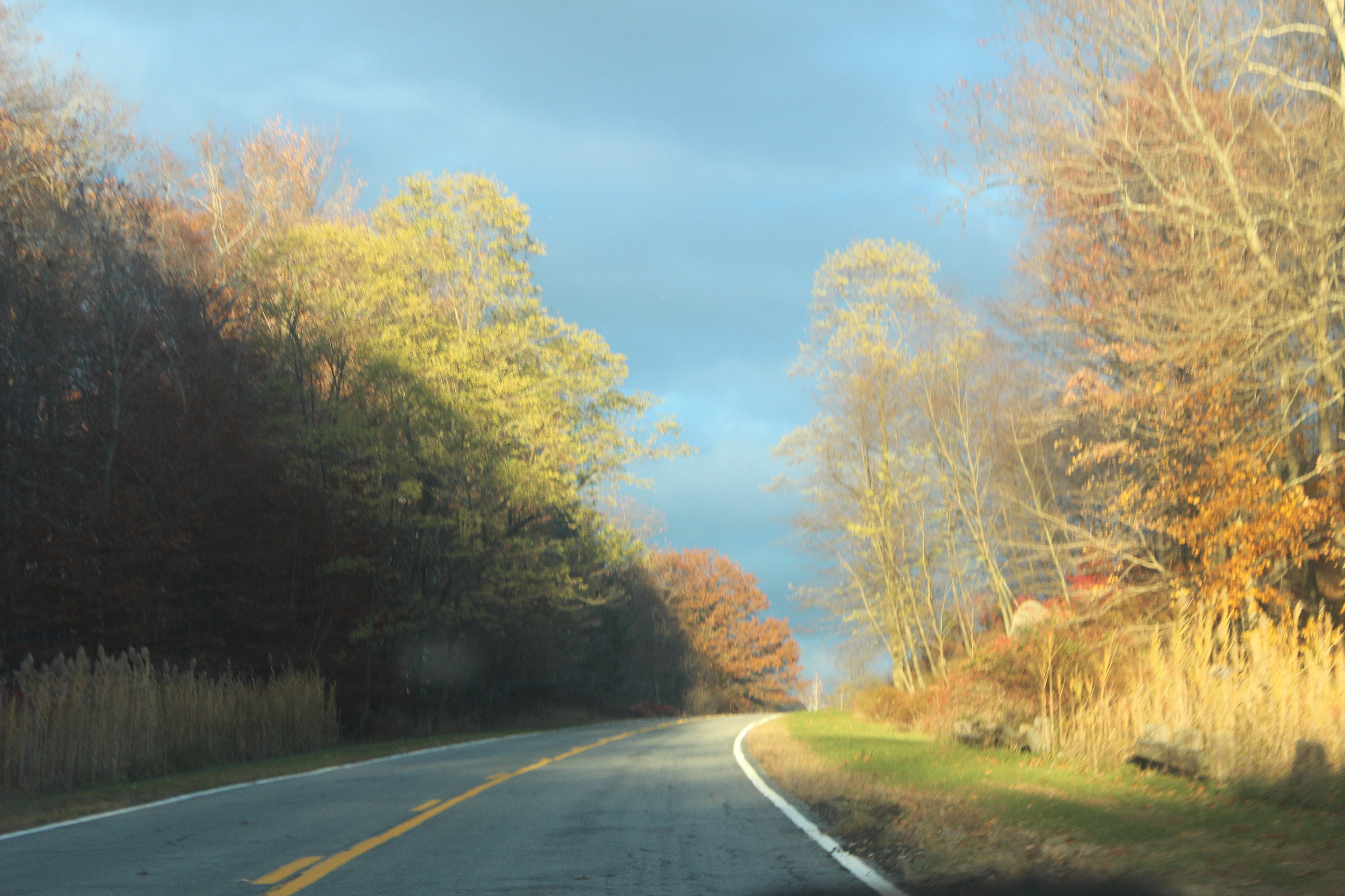 A Sunday afternoon drive through the Hudson Valley. Impressive woods, lakes, roving deer, tree tops and roads bathed in light. Rural landscapes all the way there.
